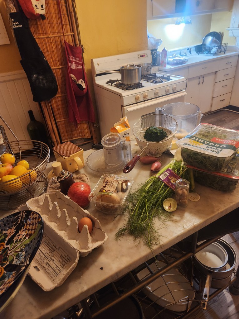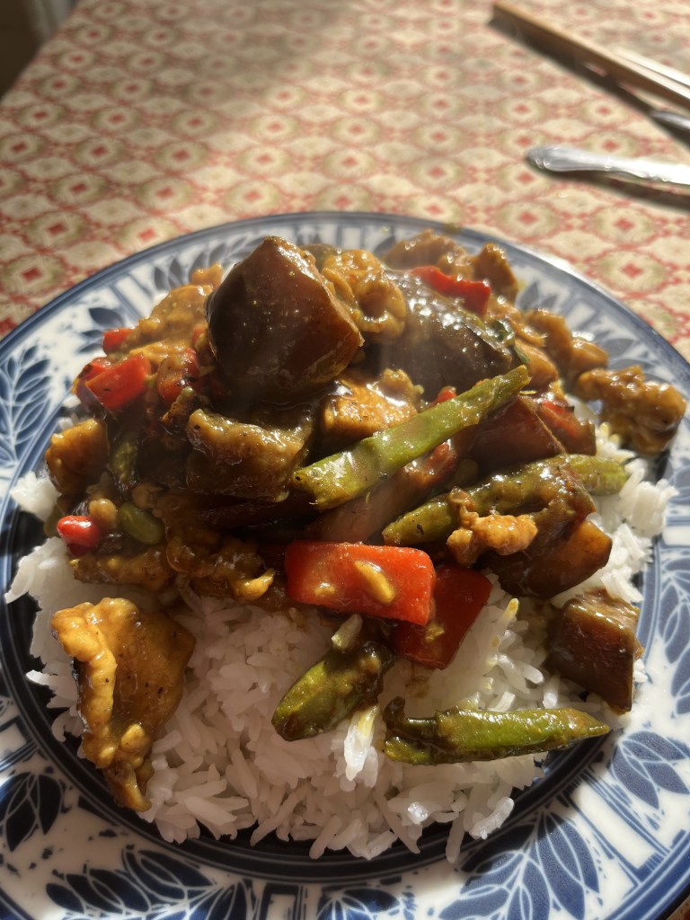 Potstickers for good luck, Singapore noodles for longevity, greens for financial prosperity. BBQ Pork buns. Shrimp dumplings. Just as in Western food traditions, pork and seafood are symbolically important to the new year, because pigs root forward and fish can only swim forward. Chicken is generally not eaten because it scratches backwards, a symbol of rumination, regret and worry. So, we didn’t eat any chicken. Save that for the 4th.