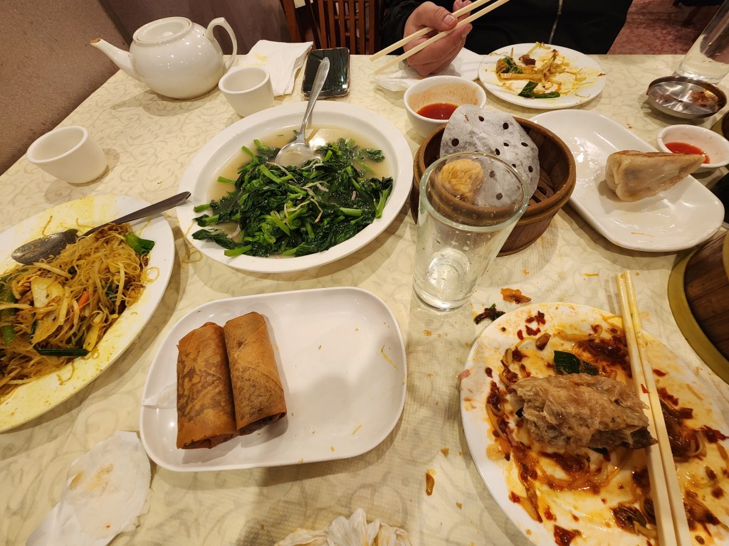 Before the parade, we found ourselves in the Peninsula Seafood Restaurant, the menu looked good and there was seating. What we didn’t know is that there was a back room with a party of at least a hundred. We could see into the back room, where all these older Chinese folks were standing for various toasts whilst every member of the wait staff carried steaming dishes of all kinds into the dining room in what was obviously a fairly elaborate ceremony.