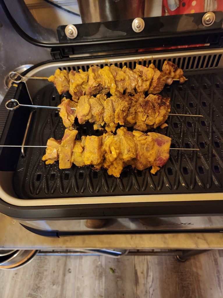 Lots of new and exciting things, people. I was gifted a smokeless grill several months ago, and it took pride of place on the top of a difficult to reach shelf where it was almost guaranteed to age, rust, gather dust, and fall apart without ever getting used for its intended purpose. Almost, but not quite. I confidently pulled it from the shelf, unwrapped it, washed it, put it together, plugged it in, and grill my kebabs on it. I absolutely love it.