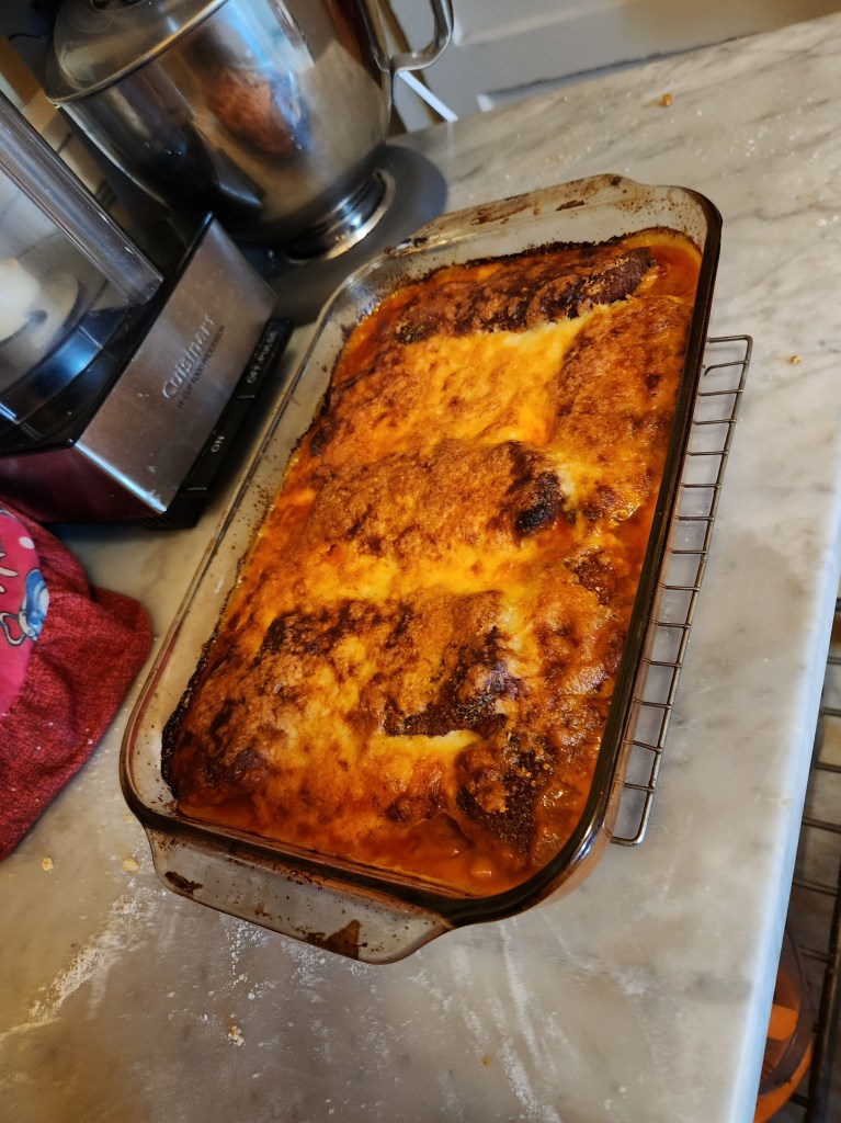 Eggplant Parmesan, one of my favs.