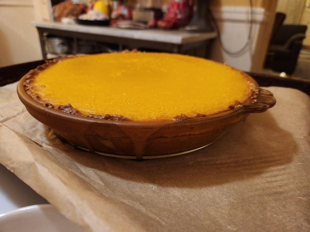 Wow, I’m really hungry. What do I want to eat? The horrible days before Thanksgiving. A turkey that’s taking up so much space in the fridge there is room for little else. You may have seen that brief post with the pumpkin cheesecake, which is still good and waning in the fridge. This stuff has got to go if I’m gonna get a move on with that Thanksgiving dinner. No room in the freezer, no room in the fridge. That’s a problem.